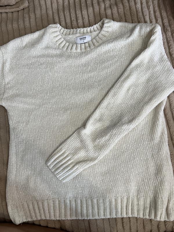 Очень приятный на чувство свитер, мягкая ткань, типа прыгающий барашек. Идеальное состояние.
