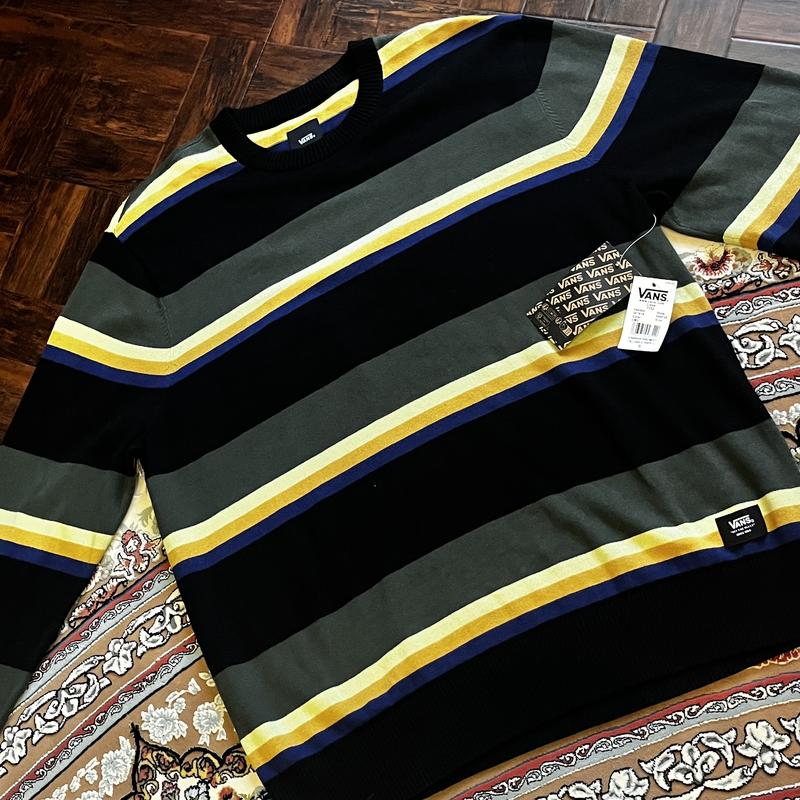 Стильний НОВИЙ світер в полосу Vans (оригінал) Розмір: S Але йде як оверсайз, тому зійде на розміри S-L Стан: новий, без дефектів, із усіма етикетками Матеріал: на етикетці Пробивши код на передостанньому фото, можна знайти оригінал цього світеру, який коштує 60$+. Також на останньому фото вставлений скріншот із продажем такої ж моделі(вартістю 67.50$). Для замовлення та деталями звертайтеся в особисті повідомлення. Дякую