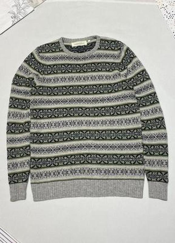 Джемпер свитер в составе с шерстью очень теплый. Бренд : Frederik Andrrson Copenhagen Приятный к телу. Чувствуешь в нем себя комфортно. Классическая модель из шерсти и хлопка с манжетами, горловиной и подолом в рубчик и уникальным принтом. Размер S 💥 ✅ Замеры: Пог 49 см ( тянется до 59 см), длина 65 см, ширина по низу 40 см, плечи 39 см, рукав 69 см