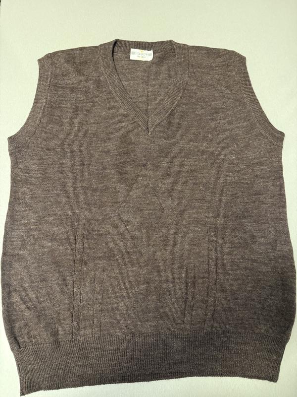 Жилетка трикотажна італійського бренду , 50% вовна, шоколадний колір. Ширина під руками 55 см. Довжина 70 см.