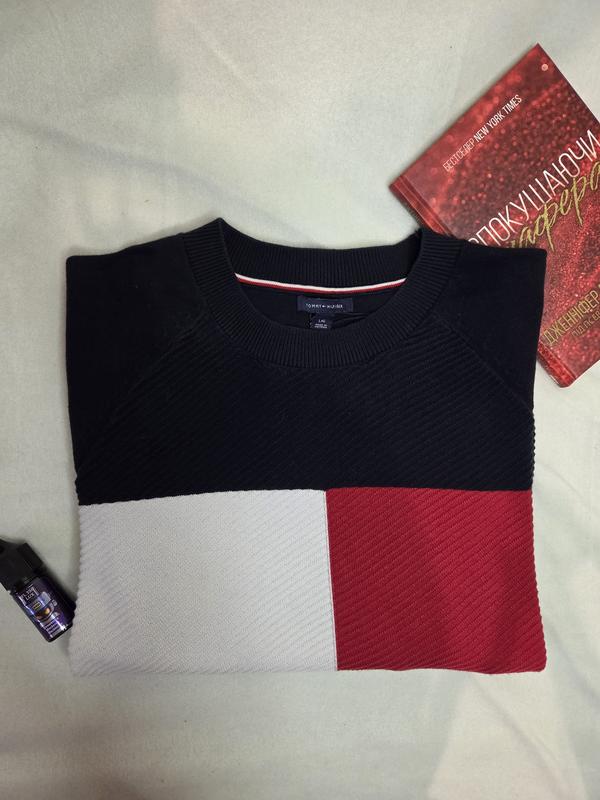Оригинальный свитер (джемпер) Tommy Hilfiger с фирменным логотипом. Это идеальная вещь для создания повседневного или кэжуал образа, которая подчеркнет ваш вкус и любовь к классике. Особенноститовара: ○ Бренд: Tommy Hilfiger ○ Дизайн: Классический джемпер темно-синего цвета с большим контрастным фирменным флагом-логотипом на груди (белый, красный и синий цвета). ○ Материал: 100% хлопок (cotton/coton/algod cann), обеспечивающий комфорт, мягкость и приятные ощущения на коже. ○ Крой: Реглан, обеспечивающий удобную посадку по плечам, и свободный силуэт. ○ Размер: L/G (большой). ○ Производство: Made in Vietnam (Произведено во Вьетнаме). ○ Качество: высококачественный хлопок и фирменное исполнение Tommy Hilfiger гарантируют долговечность. ○ Универсальность: темно-синий цвет легко сочетается с джинсами, брюками или юбкой. ○ Стиль: Вечный дизайн с большим логотипом, который всегда остается актуальным. ○ Идеально подойдет для: прохладных вечеров, осенне-зимнего сезона, или в качестве стильного акцента в гардеробе. Не упустите возможность приобрести оригинальную вещь по выгодной цене!