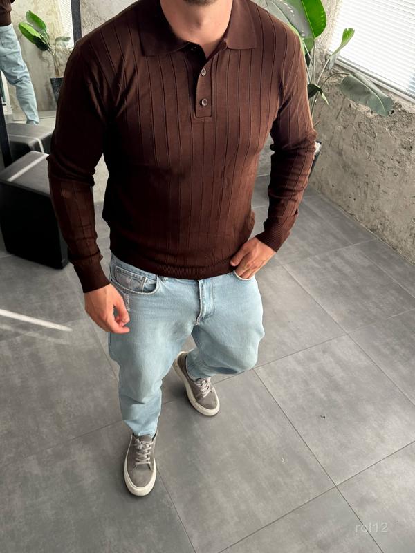 Стильный мужской свитер на зиму-осень в шоколадном цвете качественного материала