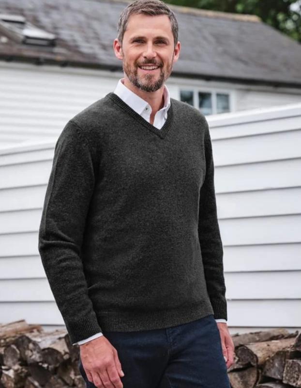 Теплый, мягкий свитер из шерсти овцы, темно-серого цвета, плечи свободно, ПІГ 63-68, ПИТ 62-67, рукав от горловины 80, длина изделия 69.
