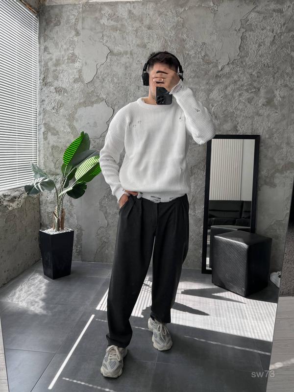 Стильний чоловічий светр на зиму-осінь у білому кольорі якісного матеріалу