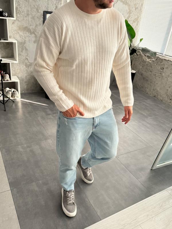Стильний чоловічий светр на зиму-осінь у молочному кольорі якісного матеріалу