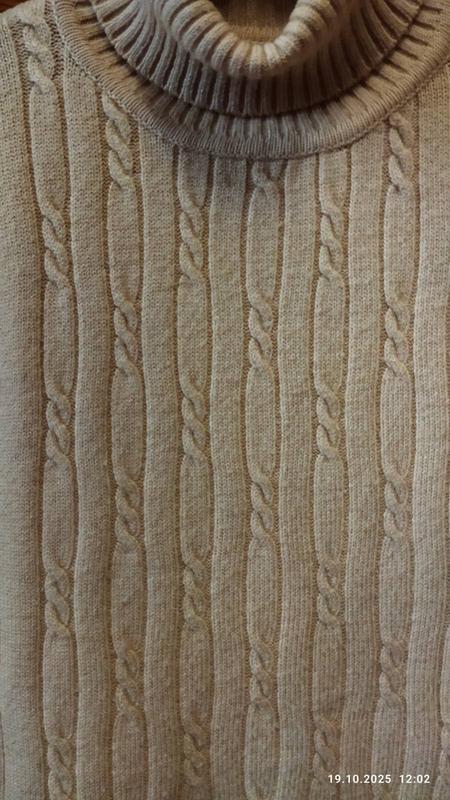 Свитер плотный , теплый, состав похож на шерсть с акрилом (бирок нет).Цвет- бежево-песочный . Длина - 65 см, рукав - 65 см. ПОГ - 56 см.