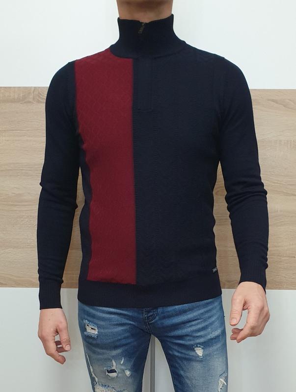 Lancetti свитер - m - темно синий с темно красным - мужской вязаный