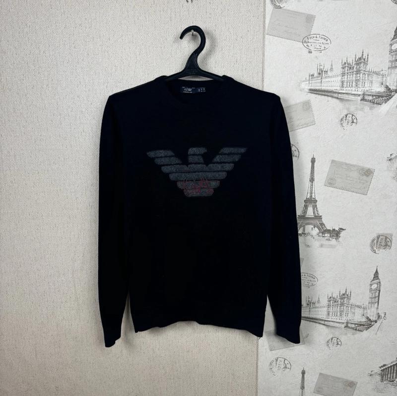 Світер чорний Armani чоловічий вязаний с вишитим пухнастим логотипом - Звичайний крій. Розмір: S Стан: Ідеальний . ЗАМІРИ: Полуобхват грудей: 48!см. Довжина: 70 см. Довжина плечей: 44 см. Низ: 43 см. Рукава: 69 см. Ціна: 900 грн. Для замовлення ПИШІТЬ в Директ! Доставка 1-2 дня по Україні