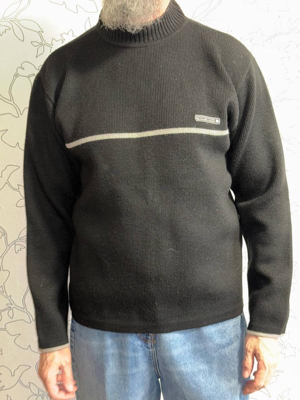 Светр вовняний, в ідеальному стані,щільна в'язка, важкий,дуже теплий. Плечі 52см, ПОГ 60см,довжина 69см, рукав 64см.