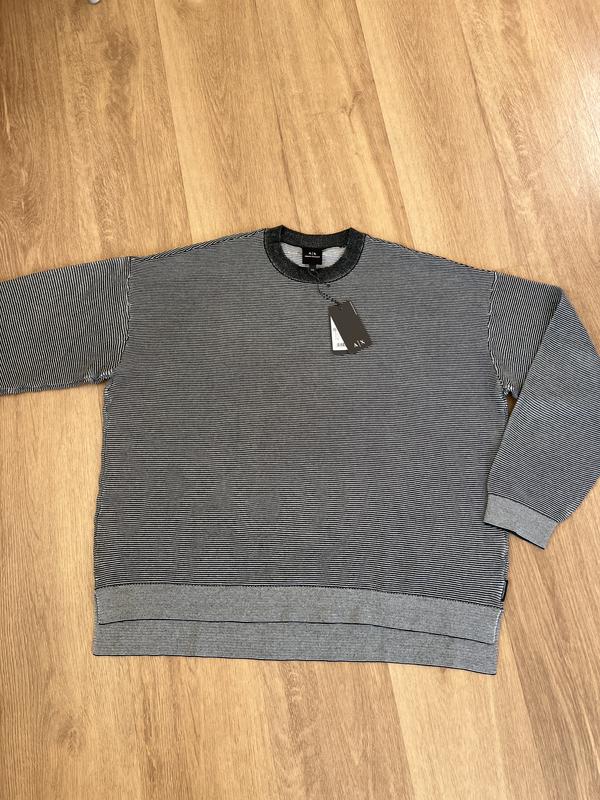 Продам чоловічий светр Armani Exchange оригінал. Класична модель з фактурною в’язкою у рубчик і стильними смугастими деталями. Светр якісний, теплий і приємний на дотик, виготовлений зі 100 відсотків бавовни. Комфортна посадка, зручний у носінні, добре поєднується з джинсами або класичними штанами. Практичний, стильний і універсальний варіант для повсякденного образу. Розмір XXL Довжина спереду 65 см Довжина ззаду 70 см Ширина під пахвами 68 см Ширина по низу 63 см Рукав спущений, довжина від горловини 80 см