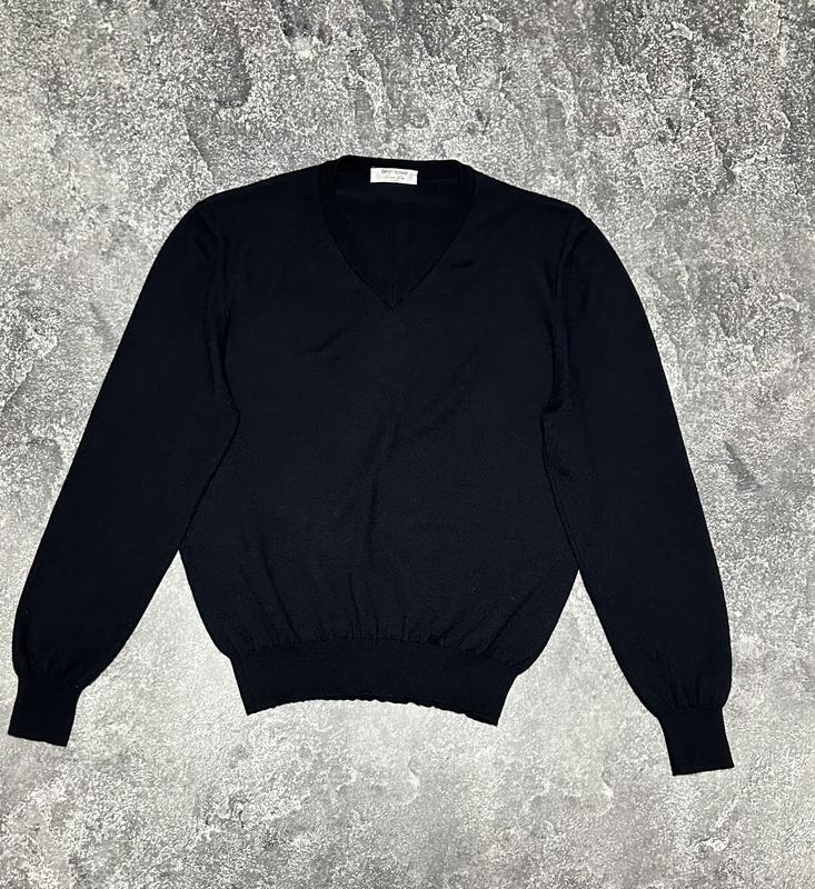 Чоловічий оригінальний светр (кофта) Gran Sasso, темно-синього кольору, склад вовна 75%, шовк 25 % Розмір: 48 (М) Заміри: ширина плечей 44 см ширина під пахвами 53 см довжина рукава 65 см довжина 65 см