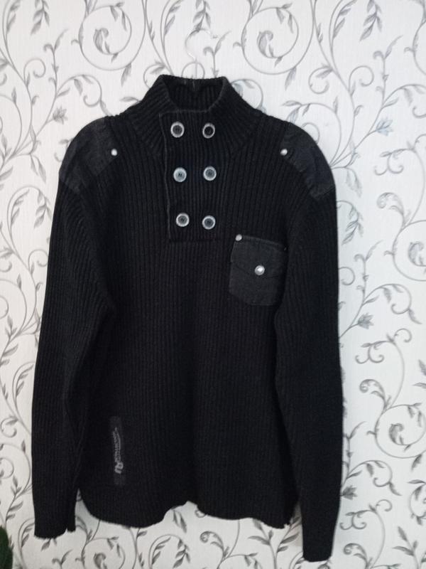 Свитер черного цвета, состояние отлично. Производство Бангладеш. Замеры без натяжки. Длина от ворота по спине 68см. Плечи 51см. Рукав от плеча 65см. НОГ 58см. Ответим на все вопросы.