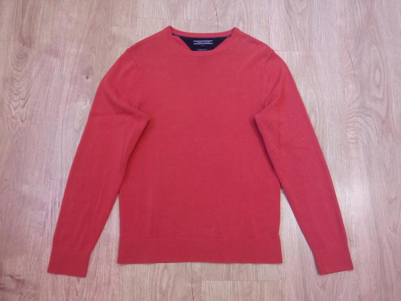 Кофта мужская свитер Tommy Hilfiger оригинал. Размер S, ширина (полуобхват груди): 48,5 см, длина: 64,5 см; длина рукава от плечевого шва: 62 см, от горловины: 72,5 см. Цвет оранжевый. Состояние хорошее, немножко отторгалась ниточка сзади ~1,5 см (последнее фото).