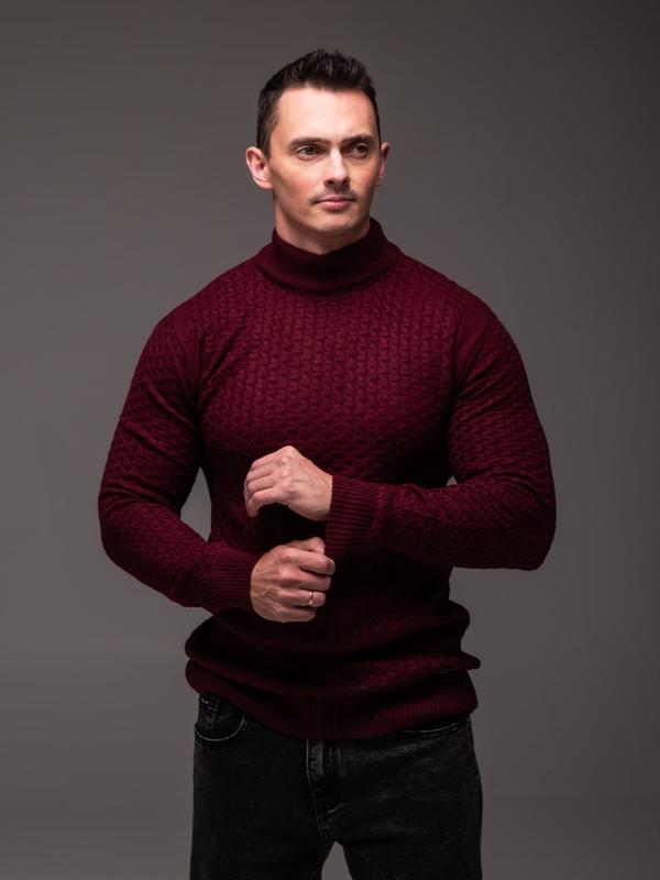 ‼️ Нова модель ‼️ 🔶 Артикул: 2449 бор 🥼 Бордовий чоловічий светр з коміром під горло 📐 Розміри: M,L,XL (модель на фото 180/80 M розмір ) 👍 Матеріал: 70% вовна, 30% акрил. тканина тягнеться. 🧷Виробник: Туреччина 🇹🇷