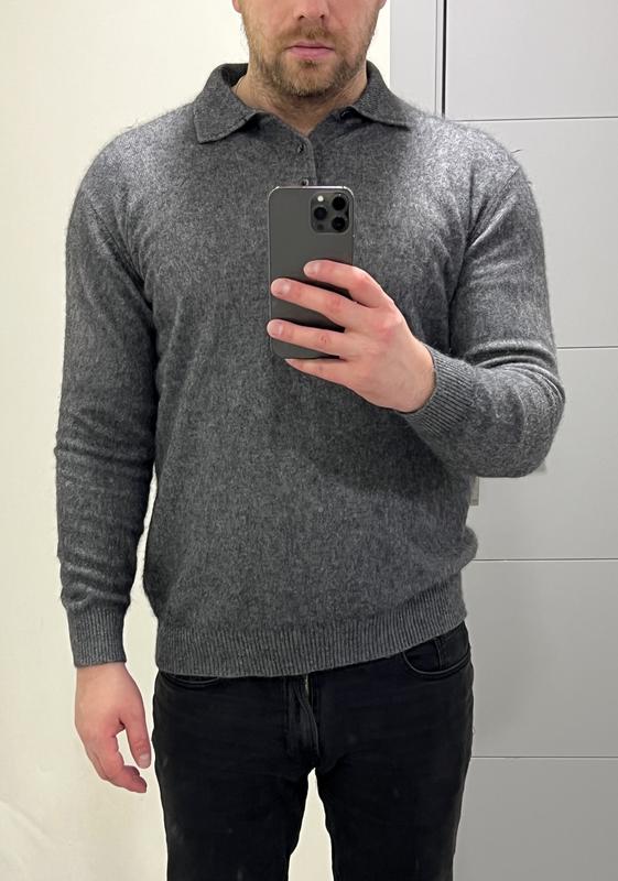Чоловіче поло з вовни кашемірової кози Стильне поло темно-сірого кольору з натуральної вовни. Ідеальний варіант для осінньо-зимового сезону. Деталі: - Матеріал: вовна кашемірової кози - Колір: темно-сірий - Стиль: поло з класичним коміром - Рукав: довгий - Фасон: класичний крій Переваги: - М’який та приємний до тіла - Відмінно зберігає тепло - Підходить для офісу та повсякденного носіння - Якісна обробка Стан: відмінний, без дефектів Ідеально поєднується з джинсами або класичними брюками. Універсальна річ для базового гардеробу.