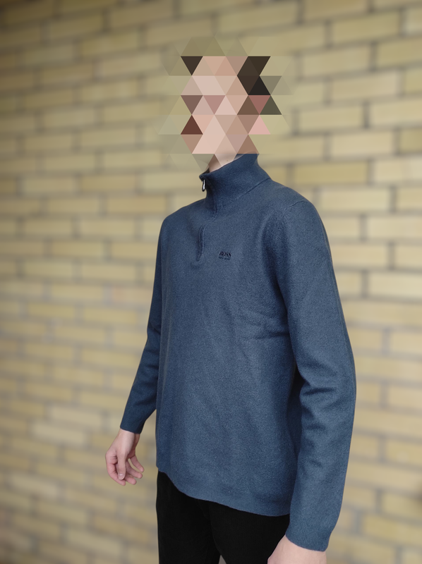 Кофта/джемпер из 100% шерсти темно-синего цвета от Hugo Boss. Параметры модели:Рост-180, Вес-67 На бирке указан размер XL.Фактический размер L. Будет хорошо смотреться на мужчине весом 75-80 кг Замеры - Плечи: 46см Рукав (от плеча): 61см Длина (от плеча до низа): 65см Ширина по груди (от подмышек до подмышек): 55 см Низ: 55см