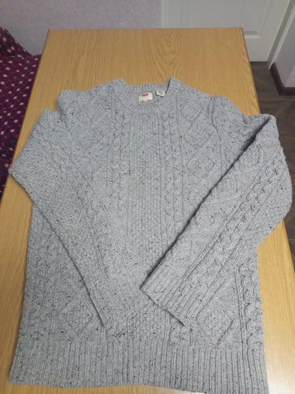 Брендовый вязаный шерстяной мужской свитер Levi's. Тянется. Пилотный. Очень теплый. Все замеры видны на фото.