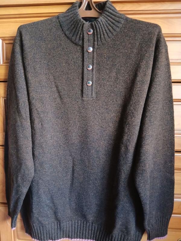 Светер коричнево-чорний, 100% шерсть, ТМ Youngor, розмір 180/120 ( 52-54), горловина на кнопках, новий