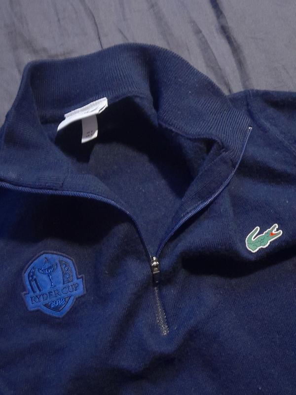 Светер Lacoste sport с эмблемой Кубка Райдера (Ryder Cup) 2018 года. Кубок Райдера — это престижное командное соревнование по гольфу среди мужчин, которое проводится раз в два года между командами из США и Европы. Турнир 2018 года проходил во Франции, на поле Albatros Course в гольф-клубе Le Golf National, недалеко от Парижа. В том году победу одержала европейская команда. Соревнование названо в честь английского бизнесмена Сэмюэля Райдера, который пожертвовал трофей для первого турнира в 1927 году. В отличие от большинства профессиональных турниров по гольфу, участники Кубка Райдера не получают призовых денег, они играют за престиж и командную гордость. Ryder Cup | Research 100% шерсть мерино не использовался (домашное хранение) длина: по спине/плече/рукав 59/9/63 ширина: плеч / по груди / низу 34/48/36