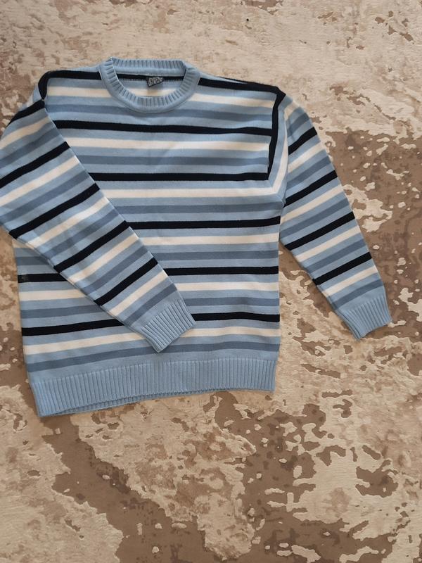 Мужской свитер теплый. В идеальном состоянии, без дефектов, не выстиранный, без катышек. Стильный, в полоску, большой размер. Длина 65 Ширина под подмышками 57 Плечи 53 Стегно 49 Длина рукава 55 Размер 54-56