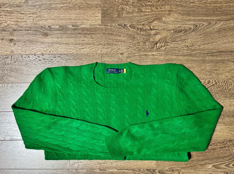 Свитер американского бренда Polo Ralph Lauren ,цвзелёный ,размер XL (маломерит на L),состав: 90% шерсть ,10% кашемир,производство Китай, замеры (п/обьём 59, плечи 52, длина рукава по внешнему шву 71,по внутреннему 51, длина изделия 70).