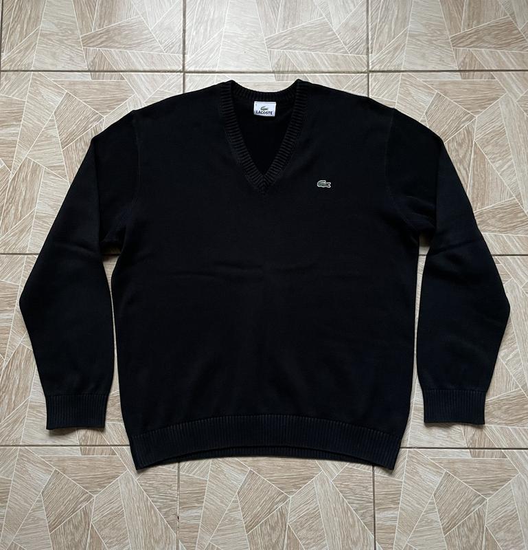 Свитер y2k lacoste v-neck knitted sweater black cotton blend classic croc logo size 5 l