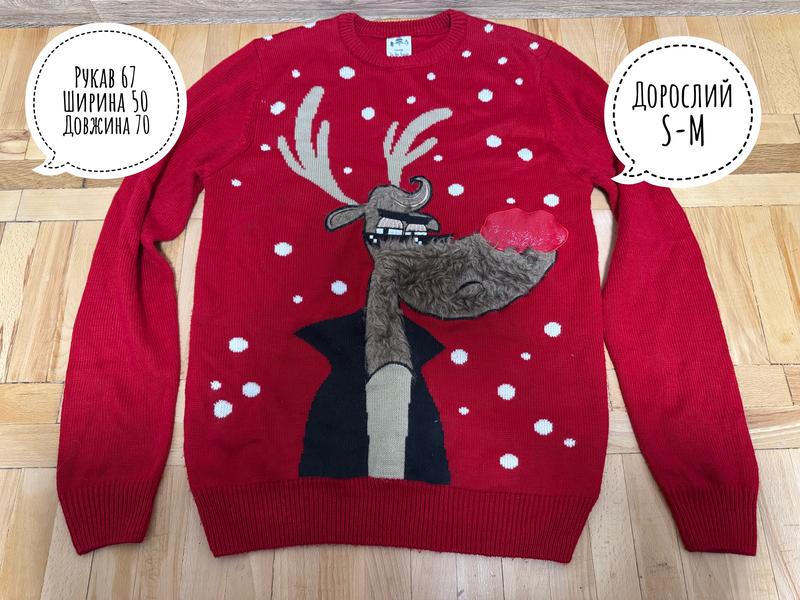 Светр в новорічний принт з Оленем( тіло хутром , ніс з еко шкіри) на розмір М від George. Стан нового. Заміри на фото є.