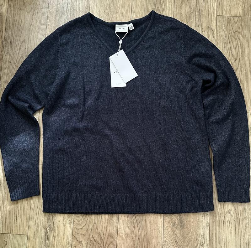 Чоловічий светр гарної якості. Колір темно-синій з сірою ниткою. Приємна та мʼяка тканина. 50% віскоза 27% нейлон 23% поліестер