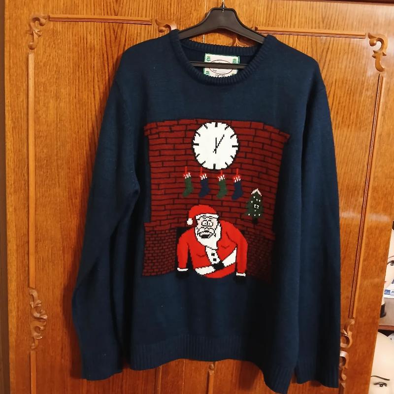 Свитерок с новогодним принтом по составу акрил приятный к телу!Дл.73 Пл.48 Р 67 Б по 23 Ог124-134 Об 116-132манжет!