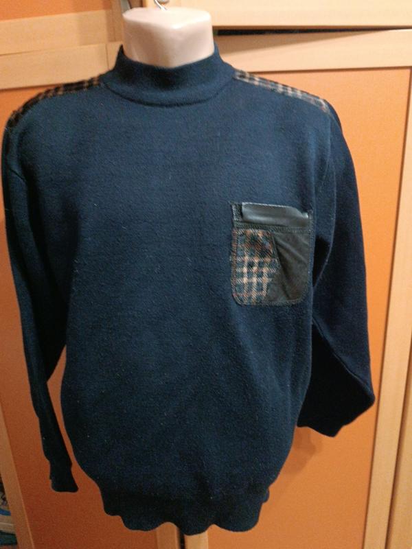 свитер лобовий, размёр 38-40, колir синий,изьян на первом фото, замире: плечи 44, грудь 54,талия 52, низ ширина 46, рукав 56, длина 59,5, бирка зризана