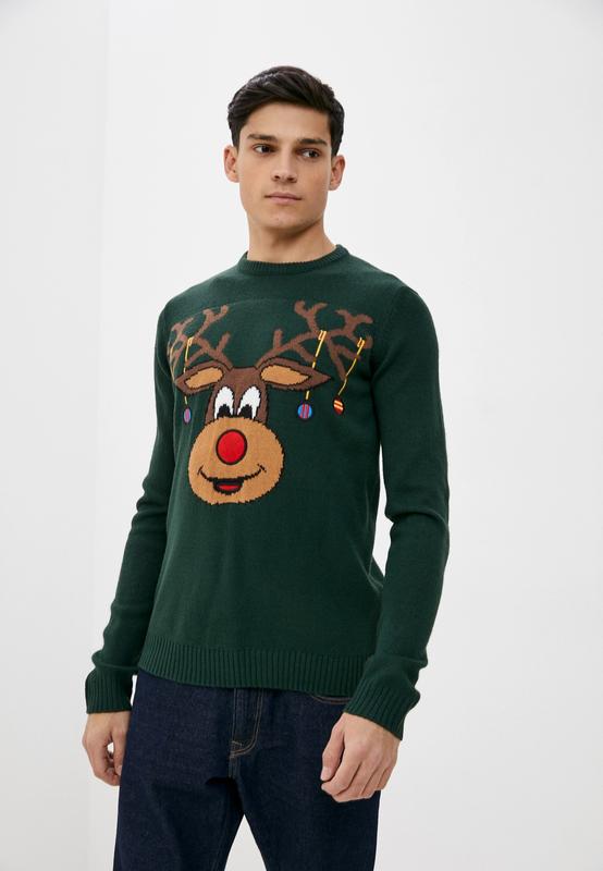 Зеленый рождественский свитер с круглым воротником и изображением оленя Рудольфа с красным носом Only & Sons Размер по набору 2XL, фактически XL Длина по спине 72 см Плечи 48 см Груди 63 см Рукав от плеча 68 см (от воротника 83 см) 100% акрил Новый