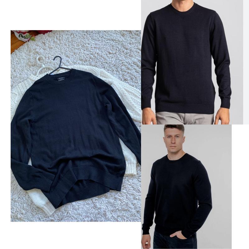 Базовий чорний чоловічий светр шерсть/котон,massimo dutti,p.m-l