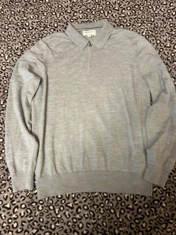 Сірий світер з вовни. На зип 3/4. Плечі 45, рукав 67 і груди 54. Дивіться ще мої оголошення.