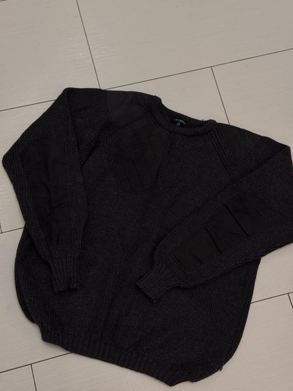 Чоловічий вʼязаний светр у сірому кольорі BURBERRY Шкіряні вставки, склад 100% вовна Розмір М , не ориг.