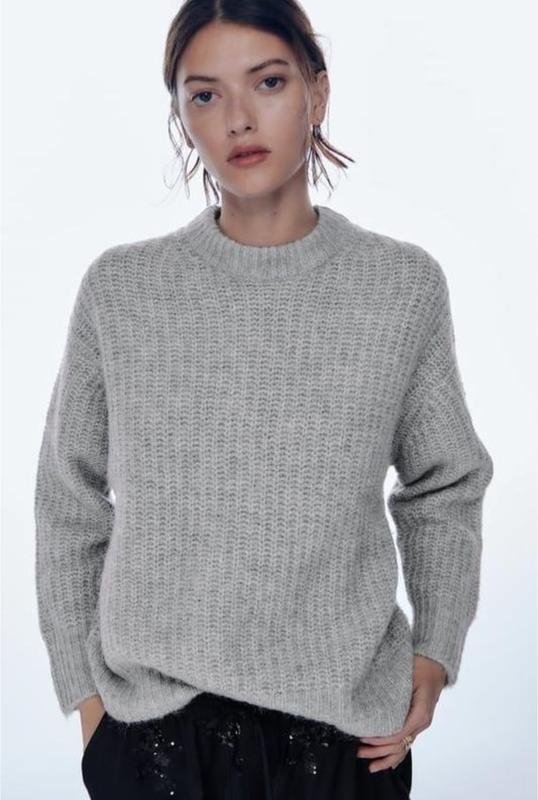 Сірий светр Zara Дуже теплий з ідеальним фасоном Склад: 64% поліестр 18% акрил 10% вовна 5% альпака 3% еластан Розмір S: Довжина по спині- 59 см Ширина - 59 см Довжина рукава від горловини- 69 см