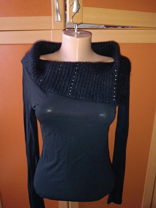 свитер черный, горловина из мохера в стразах, низ вискоза, pосмир М, замиры: грудь 38, талия 34, длина 45, рукав 62