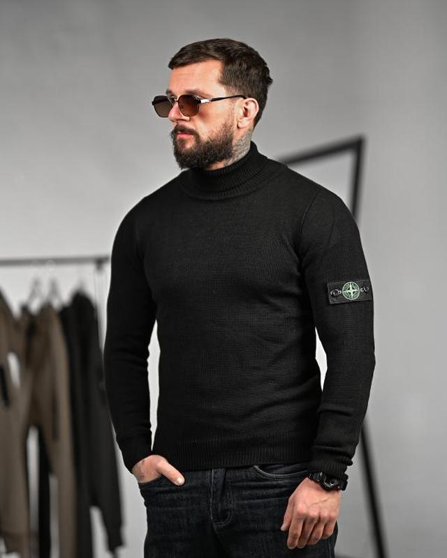 Мужской вязаный свитер с высоким воротником Лаконичный вязаный свитер в черном цвете – универсальная база для повседневного и городского образа. Чистый силуэт, аккуратная посадка и минимализм в деталях делают модель актуальной как под куртку, так и как самостоятельный элемент образа. Мягкая вязка на основе хлопка обеспечивает комфорт при носке, а добавление акрила сохраняет форму изделия и повышает износостойкость. Высокий воротник добавляет строгости и защищает от ветра. На рукаве - акцентный тактический патч, подчеркивающий характер модели. Материал: вязкая Склад: 70% бавовна / 30% акрил На модели размер M Рост 175 см, вес 75 кг Размерная сетка (см)Размер ПлечиГрудиРукавДлинаM36436060L38446163XL404560652XL41476266