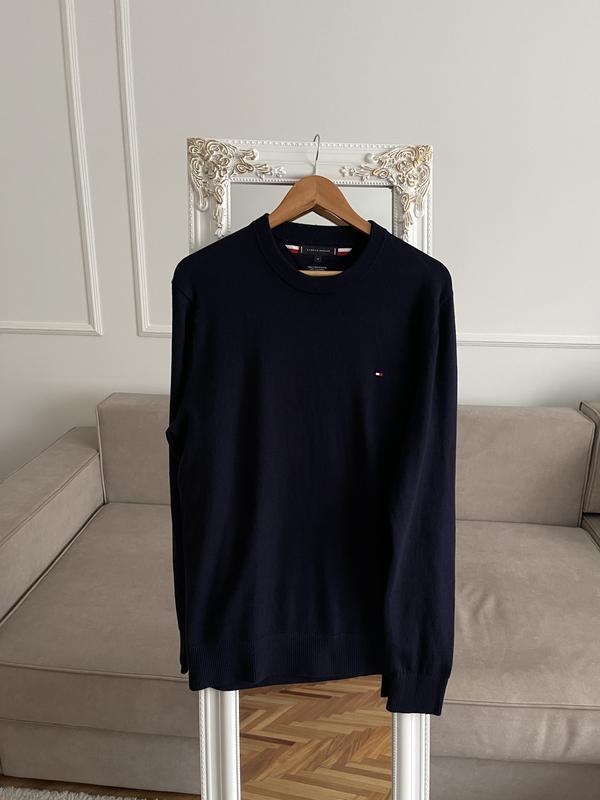 В’язаний светр TH 92% котон 8% кашемір ✅Довжина-75см Пог-55см Рукав від плеча-72см ✅Оригінальний джемпер від Tommy Hilfiger у класичному темно-синьому кольорі (Navy). Дуже приємна на дотик, базова річ, яка ідеально доповнить як діловий образ з сорочкою, так і повсякденний з джинсами. Основні характеристики: • Бренд: Tommy Hilfiger (оригінал). • Склад: Преміальна суміш матеріалів — 92% бавовна Піма (Pima Cotton) та 8% кашемір. Бавовна Піма вважається однією з найкращих у світі за м’якістю та міцністю, а кашемір додає особливого тепла та делікатності. • Колір: Насичений темно-синій. • Деталі: Вишитий фірмовий логотип-прапорець на грудях, еластичні манжети та низ для ідеальної посадки. • Країна виробництва: В’єтнам. Стан: Светр у чудовому стані. Тканина зберегла свою структуру, не розтягнута, колір насичений. ✅Чому варто купити? Завдяки кашеміру в складі, джемпер дуже легкий, але при цьому добре зберігає тепло. Це інвестиція у ваш комфорт та статусний вигляд.