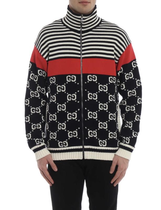 Gucci – ромбоподібний візерунок на цьому светрі на блискавці натхненний мотивом «ромбів» дому 70-х років. Він пошитий інтарсією в Італії з щільної бавовни та оздоблений гнучкою ребристою обробкою. Носіть його в перехідну погоду, коли вам не дуже потрібне пальто. Тут показано з футболкою Gucci, спортивними штанами Gucci, кросівками Gucci. - - Чорна, червона та біла вовна - Кишені на швах, ребриста обробка - 100% бавовна - Хімчистка - Зроблено в Італії - Для чоловіків. Стать: Чоловіки Артикул: 1093656