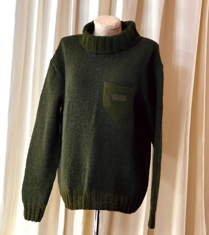 Светер чоловічий з вовни зелений🛍️❤️🔥 Розмір - UK 10-12/ EUR 38-40/ USA 6-8/ M-L / 46-48. Склад : 100% вовна. Светер вільного крою з середньою щільністю. Висока резинка коміру. Додаткові заміри: повна довжина 65 см, ширина плечей 58 см, довжина рукава 64 см, довжина від вшиву коміра до краю рукава 80 см, напівобхват грудей 62 см (повний обхват 124 см) і тягнеться до 140 см, напівобхват талії 60 см (повний обхват 120 см) і тягнеться до 140 см, напівобхват резинки внизу 51 см (повний обхват 102 см) і тягнеться до 140 см.