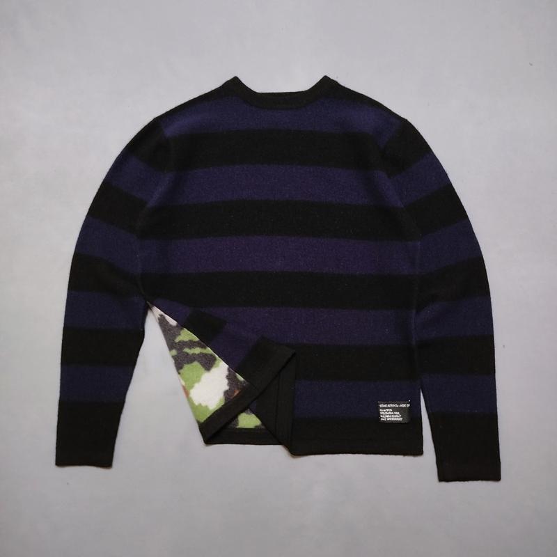 Мужской винтажный свитер Stussy из 100% шерсти Оригинальный Размер по факту S В очень отличном состоянии Теплый двухцветный свитер Stussy, очень интересный дизайн, спереди в полоску и камуфляжным узором сзади, фирменная бирка-лого снизу Длина 61см, ширина 46см, длина рукава от горловины 75см Состав: 100% шерсть