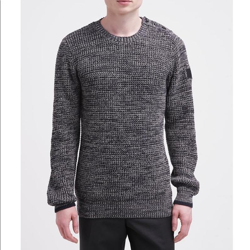 Крутий вязаний меланжевий светр від відомого бренду, лого на лівому плечі, шкіряне лого в нижньому лівому куті светра, брендовані ґудзики, м'який та приємний на дотик, класно виглядає на тілі Ідеальний стан Розмір М (маломірить на S) заміри: грудей 52, довжина від плеча 67, плечі 42, довжина рукава від плеча 70