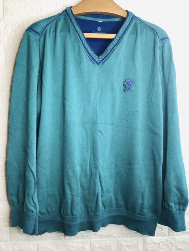Мужской свитер немецкого бренда «BABISTA». Нереально красивое сочетание цветов бирюзового и синего. Состав: 100 хлопок. Размер - 50. Свитер в состоянии новой вещи. Замеры по запросу.