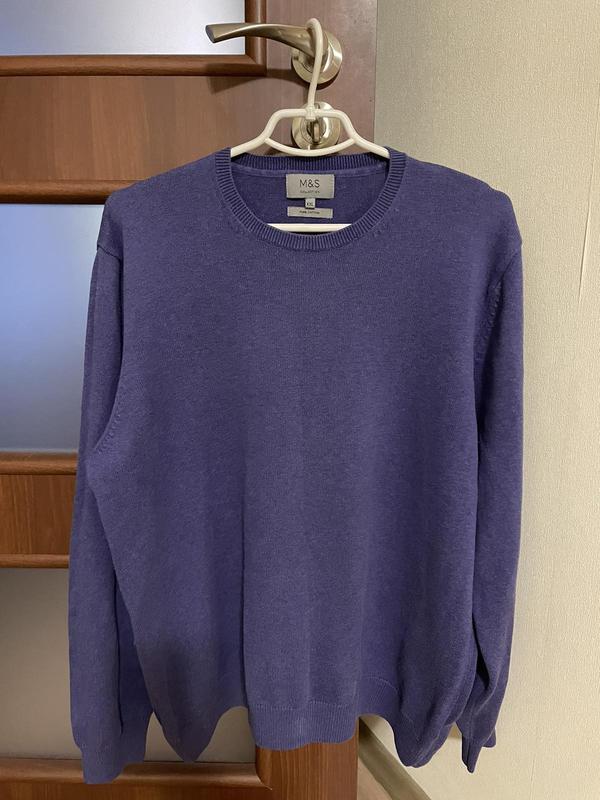 Свитер M&S XXL. Цвет красивый сиреневый. 100% хлопок. Состояние идеальное, без катышек.Толщина вязки средняя. Плечи 50, пог 65, длина 69, длина рукава от плеча 68.