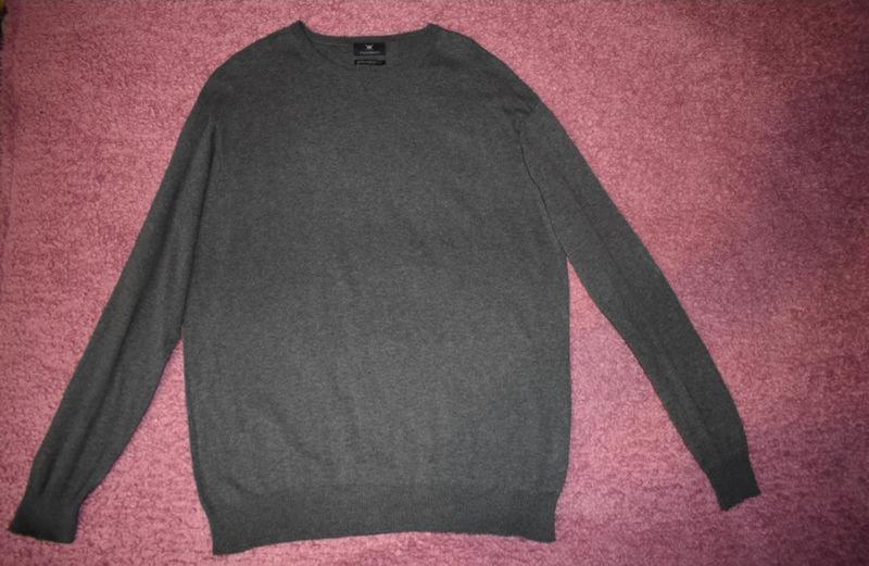 В отличном состоянии. Минимальные следы носки. Замеры /подмышки 61 см. ПОГ 60.5 см. Длина рукава до плеча 66,5 см, плечевой шов приспущен. Длина рукава полностью от горловины 86 см. Плечи 54,5 см. Длина полностью по спинке от плеча 76 см.