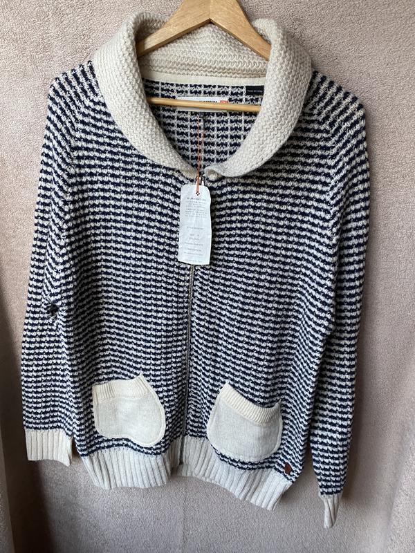 Светр-пуловер на блискавці в'язаний чорно-білий! Діна рукава 62-63див ПОГ 55см Довжина виробу 69см