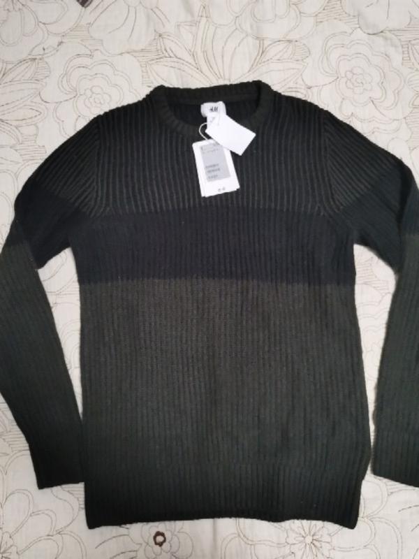 Шикарный мужской свитер от ТМ H&M, цвет красивый темно бутылочный Красивая плотная вязка Длина 73 см Ширина под проймой 51 см Длина рукава 71 см Сток Свитер реально крутой, сдержаный, элегантный, для серьезного мужчины