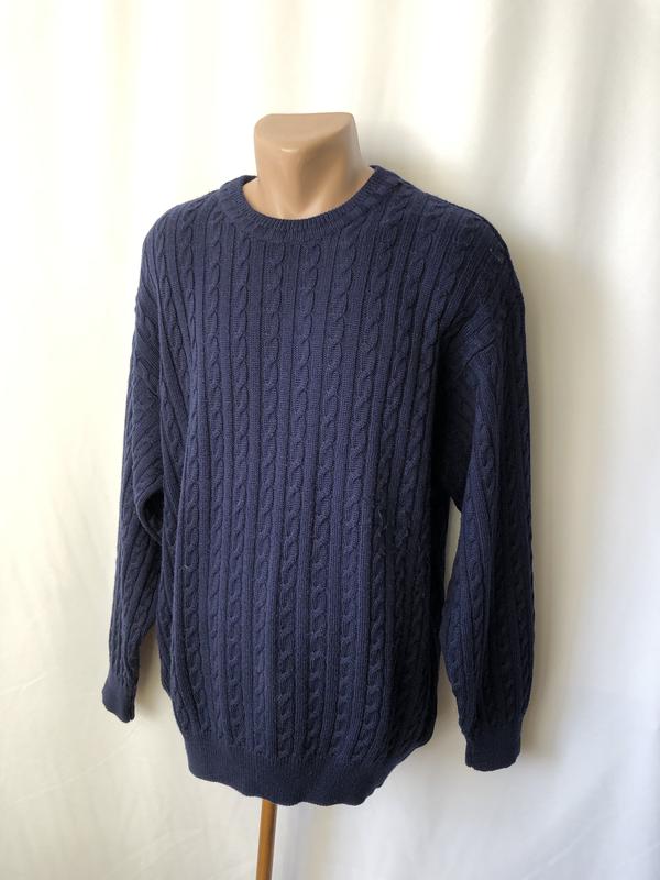 Синий свитер косы неколючий араны кофта телпая шерстяная gardeur