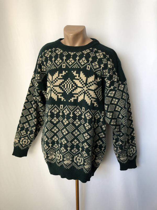 Зелёный с бежевым узором винтажный свитер Длина 79 Ширина 64-61-50 (грудь талия низ) Плечи 72 Рукав 54