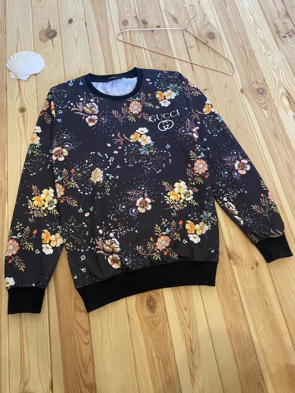 Красивий світшот від легендарного бренду Gucci. Виконаний у чорному кольорі з принтами квітів. Великий логотип розташований на грудях. Класно виглядає на тілі. Розмір: XS-S Стан - гарний, присутня невелика кошлатість Особиста зустріч в Києві або відправка накладним платежом за передоплатою Є чимало схожих речей Дивіться інші оголошення Заміри в особисте повідомлення!
